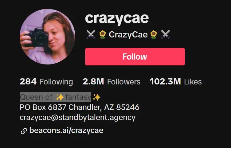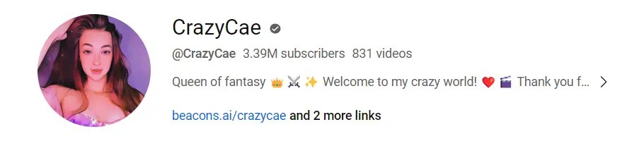 By August 2023, CrazyCae has garnered an impressive social media following, with over 2.9m+ devoted fans on TikTok, more than 370k+ followers on Instagram, and a thriving YouTube community with over 3.7m+ subscribers. As her popularity on TikTok soared, CrazyCae  seamlessly transitioned into other social media platforms, expanding her reach and influence. Her Instagram provides a glimpse into her life behind the scenes. This multi-platform presence has allowed her to build a holistic online presence, ensuring that her fans can connect with her on their preferred platforms.